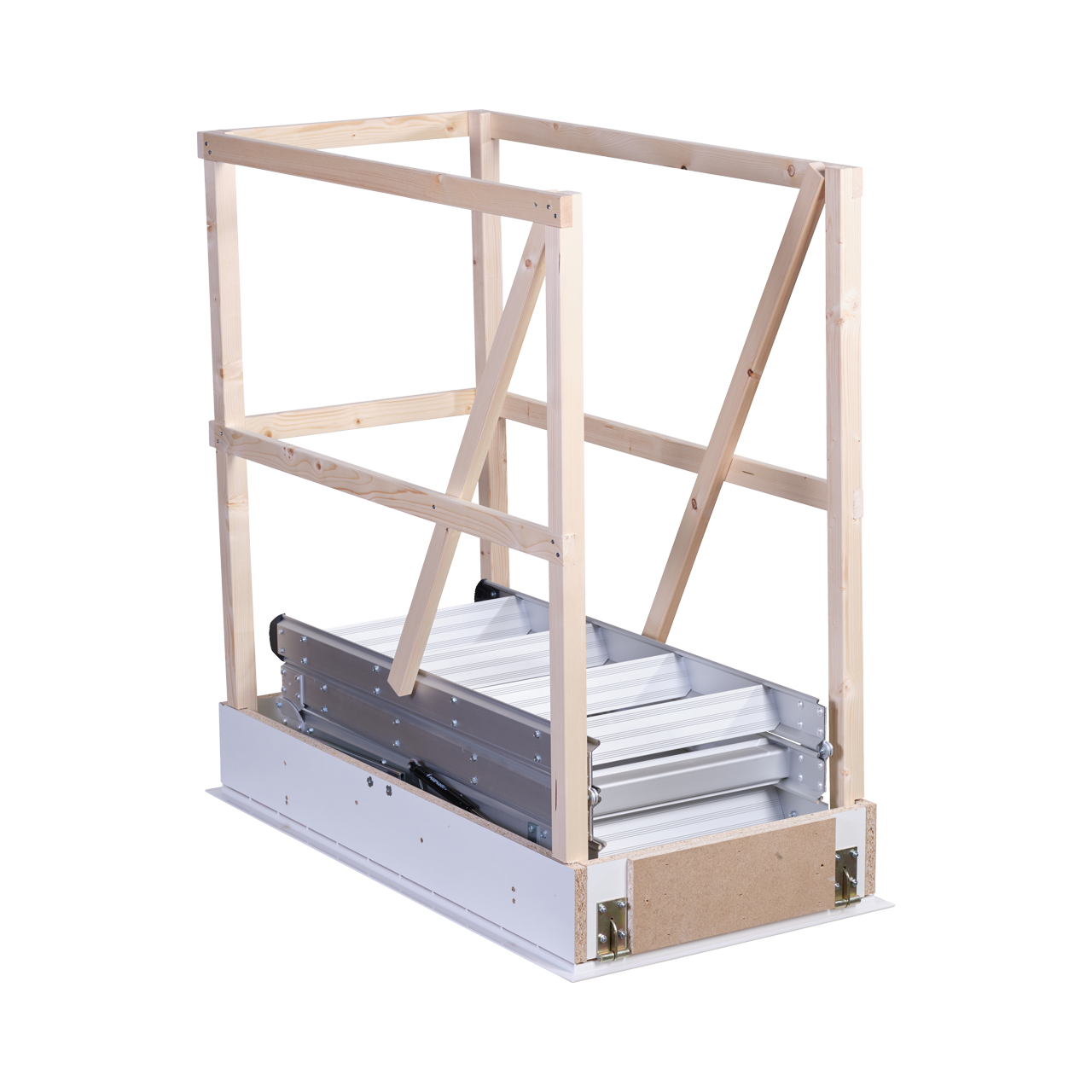 Skyddsräcke D1004 monteras på vinden för att förhindra fallolyckor i öppningen för vindstrappan. Passar alla vindstrappor med karmyttermått upp till 570 x 1116 mm. Höjd 900 mm. Fästes med medföljande vinkelbeslag.